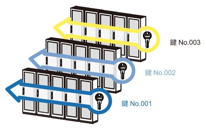 通过对不同的钥匙使用相同的钥匙号,可以用一把钥匙进行管理,就好像是同一把钥匙。