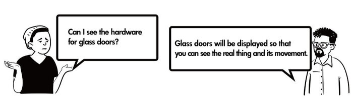We recommend our customers to install doorstops on glass doors. The doorways may not align with each other because the air conditioning in the bathroom causes the door to move. By attaching a doorstop to the top of the door, the doorstop of the glass door is maintained by magnetic attraction. Furthermore, the "stay," which will be exhibited for reference this time, limits the opening and closing angles of the glass door so that it does not hit the wall and can be used safely.