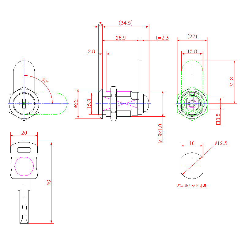 | 鍵No. | 付属:鍵2本 鍵違い数:最大5000通り |