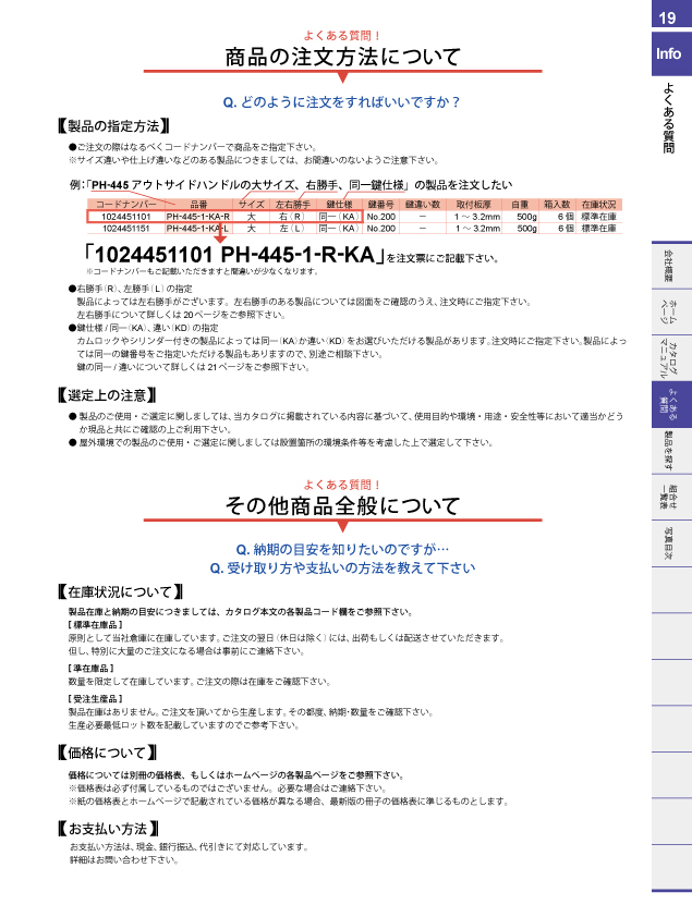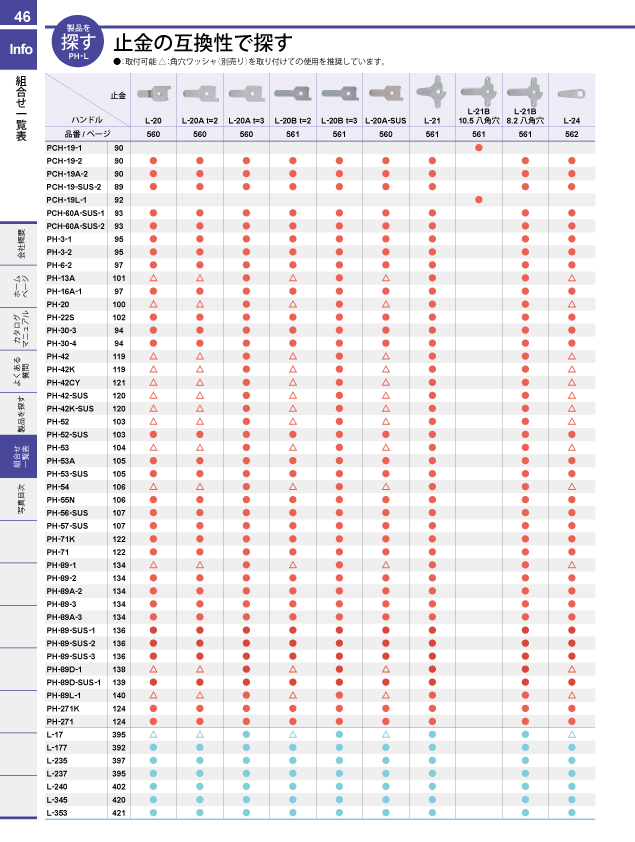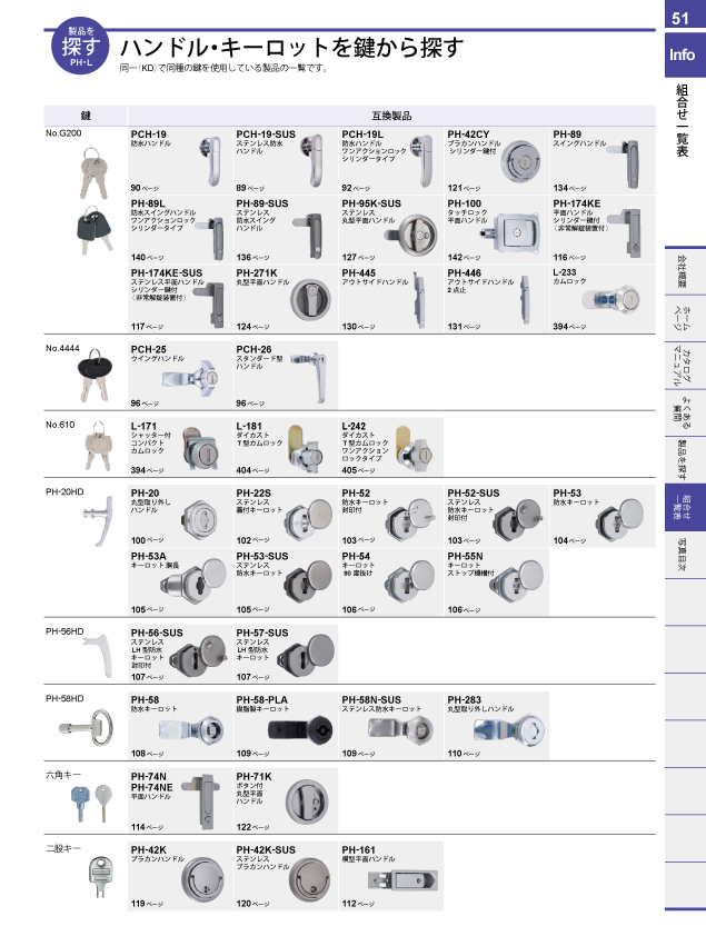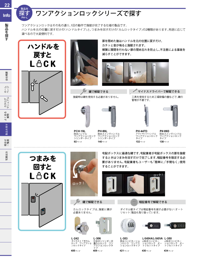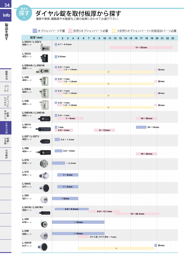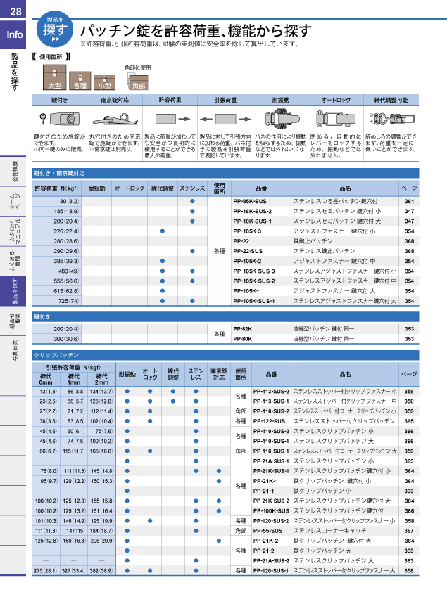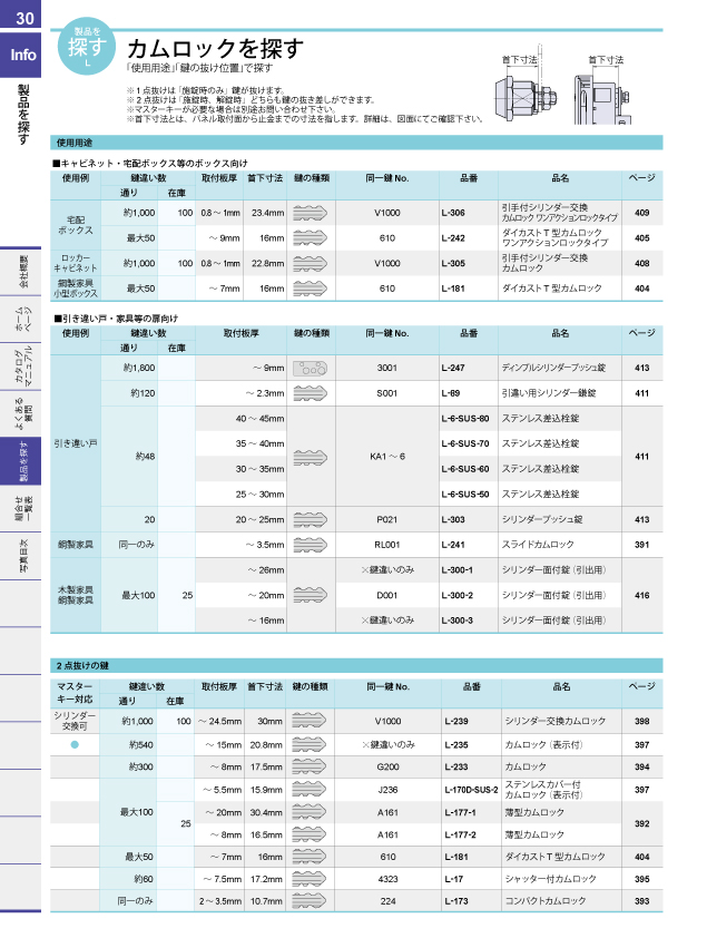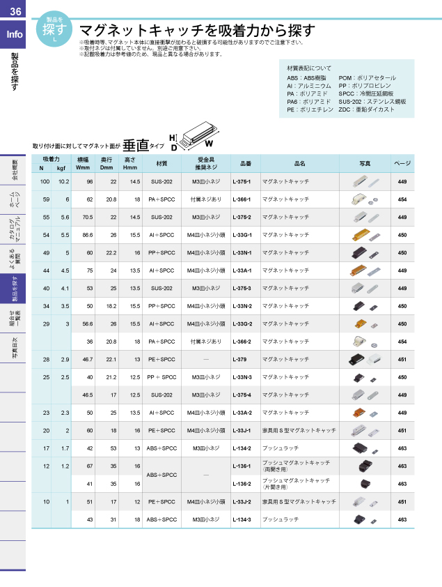 ワンアクションロックシリーズで探す 取手を許容荷重から探す 取手をピッチ別取付互換から探す 脚金具を許容荷重から探す パッチン錠を許容荷重機能から探す カムロックを探す ダイヤル錠を仕様から探す ダイヤル錠を取付板厚から探す マグネットキャッチを吸着力から探す 戸車を許容荷重から探す キャスターを許容荷重から探す チェーン・連結金具を許容荷重から探す チェーンと連結金具の組合せで探す 止金の互換性で探す ハンドル・キーロットをパネルカットから探す カムロックをパネルカットから探す ハンドル・キーロットを鍵から探す 南京錠との組合せで探す