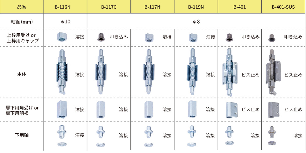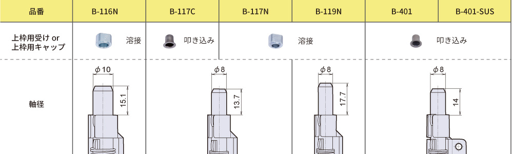 叩き込みタイプ B-117C、B-401、B-401-SUS