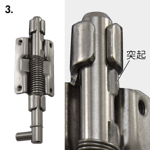 3.軸を左右どちらかに回すと突起が引っ掛かり一時的に軸を下げた状態を保持します。