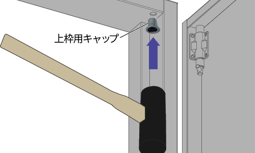 上枠用受けは溶接での取り付けでしたが、叩き込みタイプは上枠に開けたΦ10貫通穴に上枠用キャップを叩き込むだけで取り付けできるので、施工がより簡単になりました。上枠用のトロカバーは不要です。