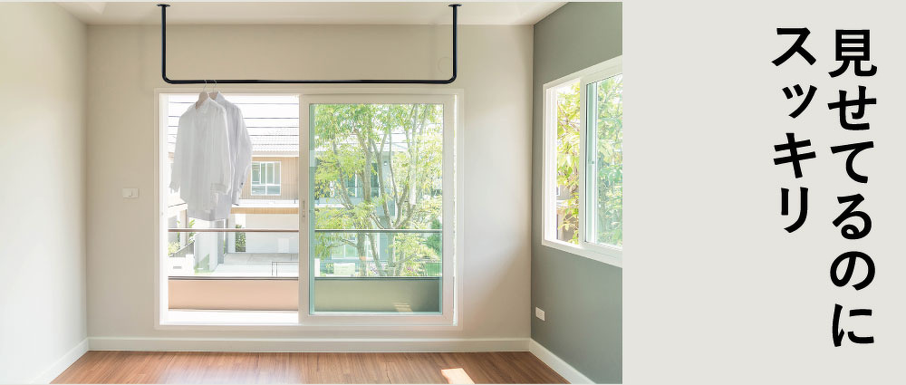 これまでの物干しや洋服掛けのイメージを一新!「見せる収納」にこだわったシンプルデザインの天吊ハンガーパイプPT-604、PT-605のご紹介です。