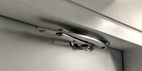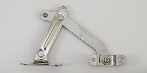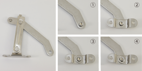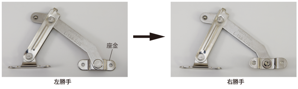 ステンレスアームストッパーL-35-SUS、L-138-SUSは組み換え作業を行う事で左右勝手を変えることができる左右兼用型です。