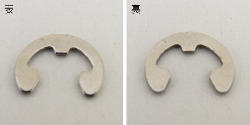 ※E形止め輪を取り付ける際、表裏に注意して下さい。エッジが丸くなっている方が表側です。