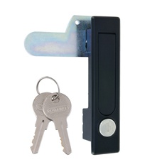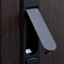 点検口や配分電盤に使用されるハンドルを、シボ加工後に黒色塗装を施しマットな仕上がりにした製品です。