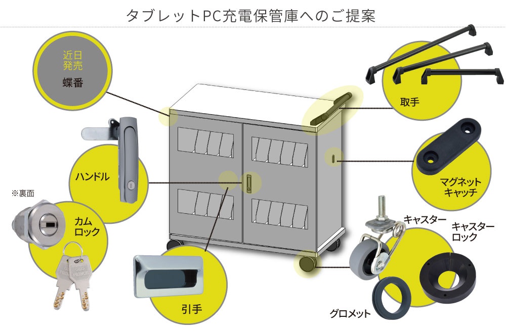 この構想の実現において、学校の教室や廊下に、「タブレットPC充電保管庫(電源キャビネット)」の設置が進められております。保管庫に最適な商品をご紹介いたします。