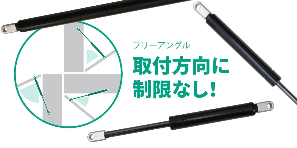 2020.10.19【ガススプリング第3弾】取り付け方向に制限なし! 通常のガススプリングは、ロッドを下向きとし、垂直より60度以上傾けてはならないとされています。 ですが、ジョー・プリンス竹下のL-659/L-660 は取付方向に制限がなく様々な場所で使用することが可能です。 第3弾として、L-659、L-660 フリーアングルガススプリングをご紹介! ■特徴 1.全方向取り付け可能! ■紹介製品 ※画像をクリックすると詳細へ飛びます。 L-659/フリーアングルガススプリング L-660/フリーアングルガススプリング ←商品のお問い合わせはこちら