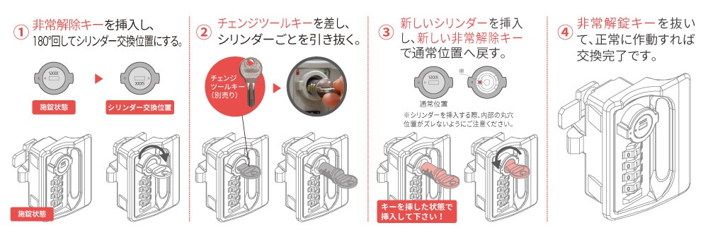※シリンダーチェンジキー、交換用シリンダーは別売りです。
