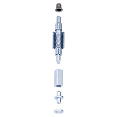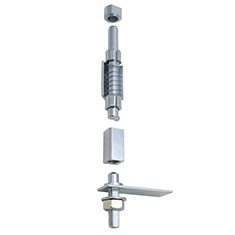 従来のピボットヒンジは上枠用座金を溶接で取り付けなければなりませんでしたが、上枠に開けたφ10貫通穴に叩き込むだけで取り付けできるので、施工がより簡単になりました。また、B-401、B-401-SUSは、ビス止めタイプにため、カラー銅板などの溶接できない扉や塗装後の取り付けに適しています。
