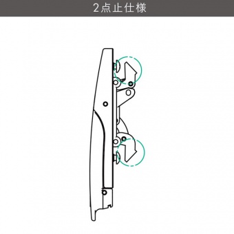 上下連動機構のアウトサイドハンドルに、ロット棒とロット棒用ガイドを組み合わせることで3点止仕様にできます。