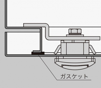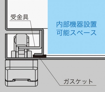 アウトサイドハンドルはガスケットの外側を設置位置としました。これによって、盤内の有効スペースを確保することが可能になりました。