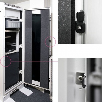 内部機器の配置や止金具などへの干渉を考慮する必要がなく、キャビネット内のレイアウトの自由度が高まります。
