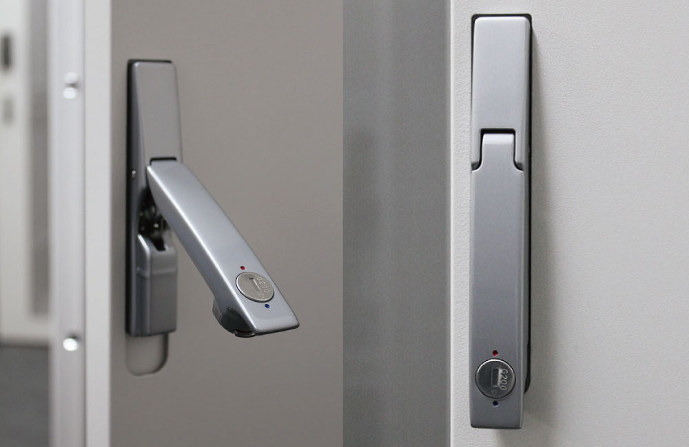 ②ハンドルの上下2箇所で扉を締め込む「2点止仕様」タイプ